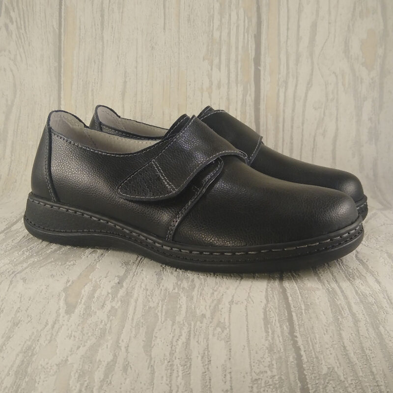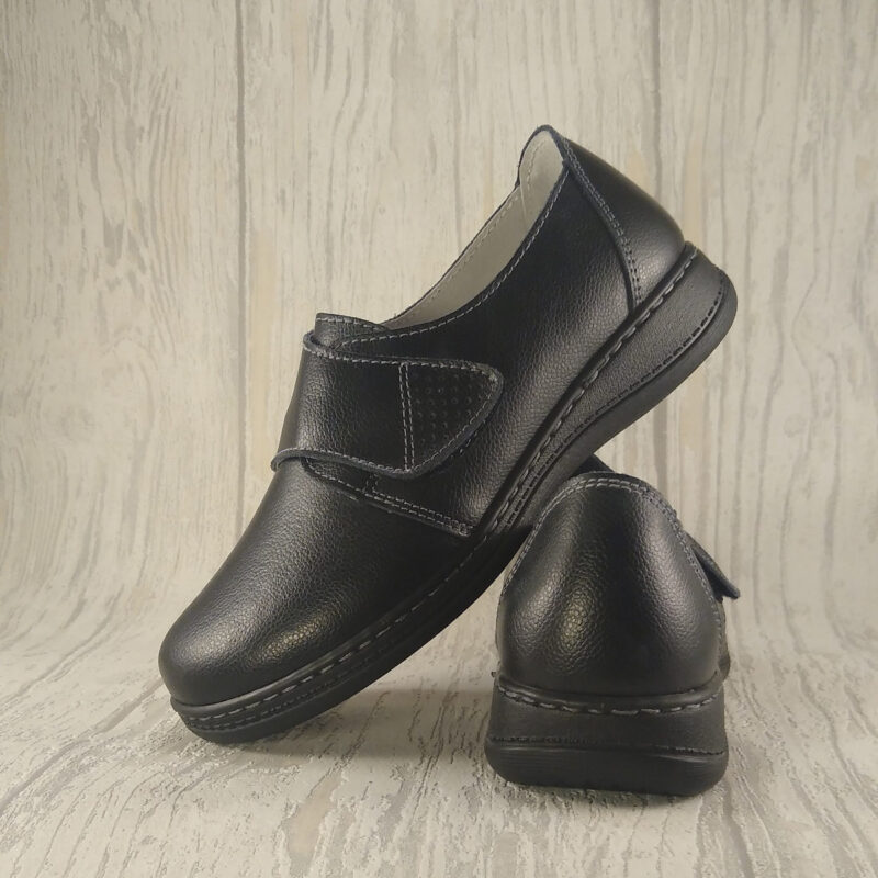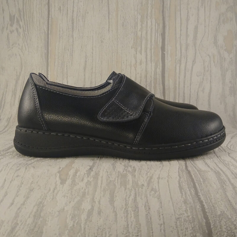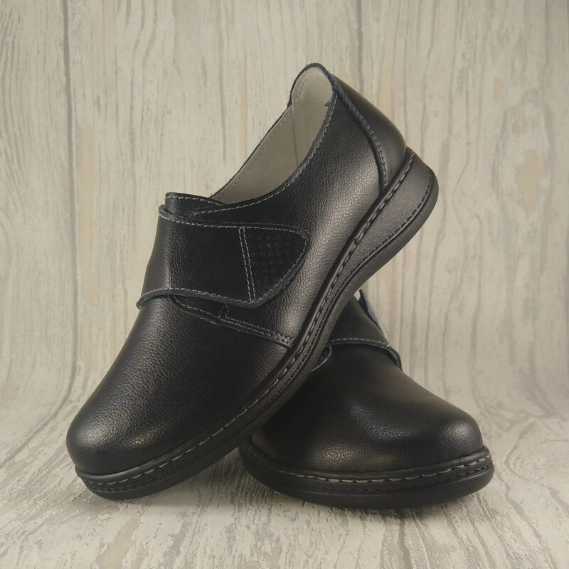 Pantofi din piele naturală foarte comozi şi uşori, cu închidere pe bază de scai pentru un plus de siguranţă.