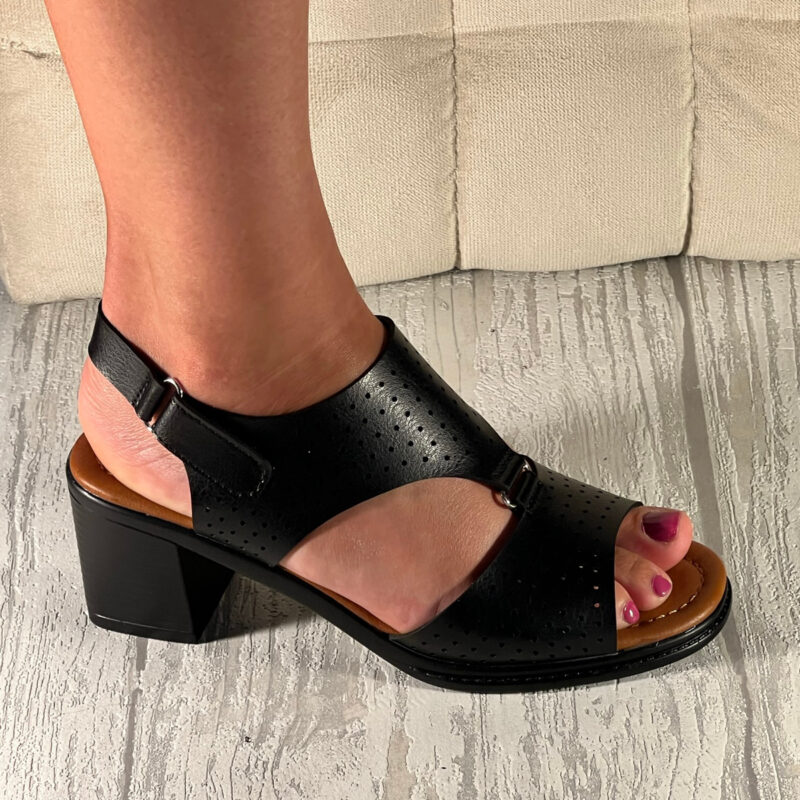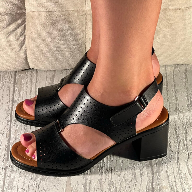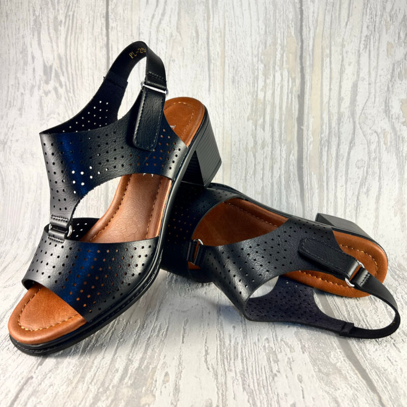 Sandale din piele ecologică cu toc potrivit, foarte comode şi uşoare potrivite pentru diverse ocazii.
