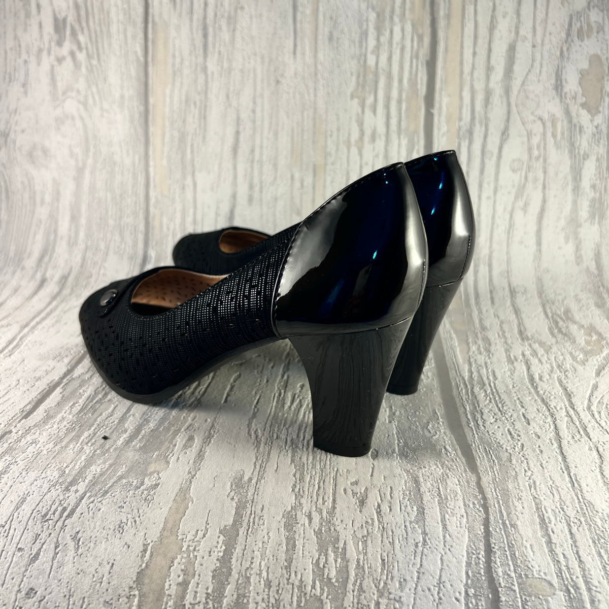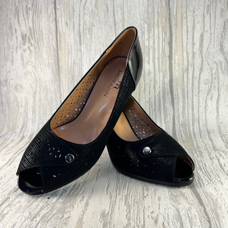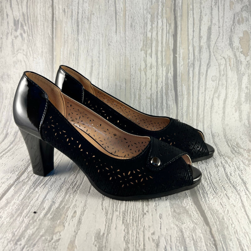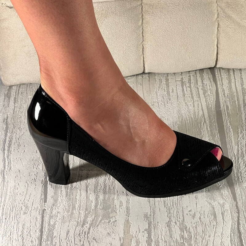 Pantofi cu toc decupaţi in faţă pentru un plus de eleganţă potriviţi pentru ocazii deosebite.